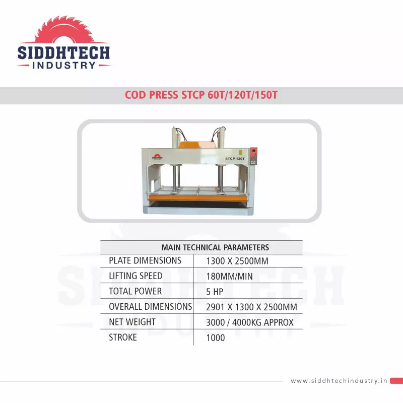 In order to meet the diverse requirements of industrial clients, we manufacture Cold Press 120 Ton machines used in plywood and panel processing work. This Cold Press 120 Ton machine is made available to industrial users within the committed delivery period. This equipment is widely required in furniture manufacturing units and board pressing operations. Moreover, this Cold Press machine is known for stable pressing structure and mechanical assembly. The entire machine range is manufactured according to defined fabrication procedures of this industrial domain.