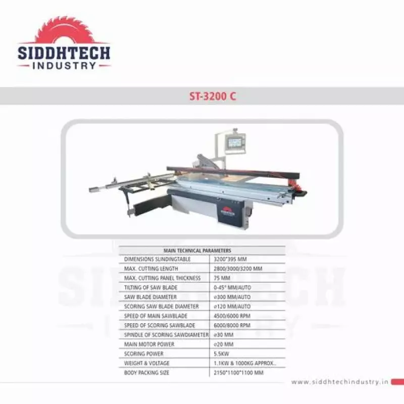 We Are Manufacturing And Supply WoodWorking Machine And Tools.We Are Supply Panel Saw Machine.We Are Manufacturing Sliding Table Panel Saw ST3200 Machine.Sturdily Built Heavy Duty M/c That Gives Precise Cut With Burr Free cuttingEasier & Quick Scoring unit Up-down Movement & Lateral AdjustmentExtra Second Support For Wider Work PiecesCentral Lubrication System Facilitate Smooth & Precise MovementMade In India With Best Service & Spa Continue